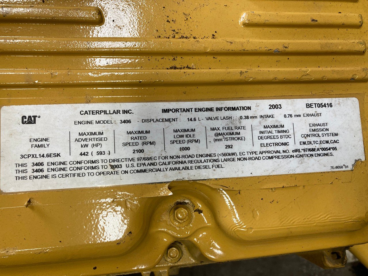 ENGINE SERIAL NO. BET05416